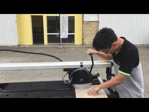 Ball-bearing guided rail on this tile saw for smooth operation.