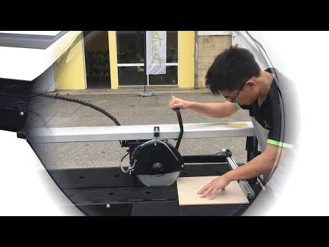 Ball-bearing guided rail on this tile saw for smooth operation.